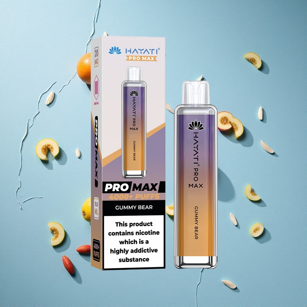 Hayati Pro Max 4000 نفخة بخار قابل للتخلص بنكهة دب الصمغ العربي مع بطارية 1400 مللي أمبير وقوة نيكوتين 2%، 5%