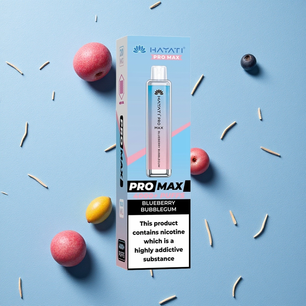 Hayati Pro Max 4000 Puffs سيجارة إلكترونية قابلة للشحن بنكهة التوت الأزرق وعلكة فقاعية مع بطارية 1400 مللي أمبير