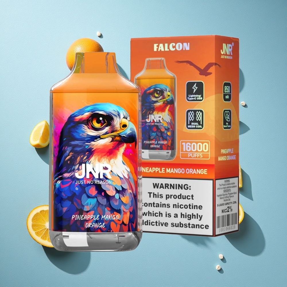 JNR Falcon 16000 Puffs أناناس مانجو برتقال سعة البطارية: 850 مللي أمبير سعة السائل: 22 مل