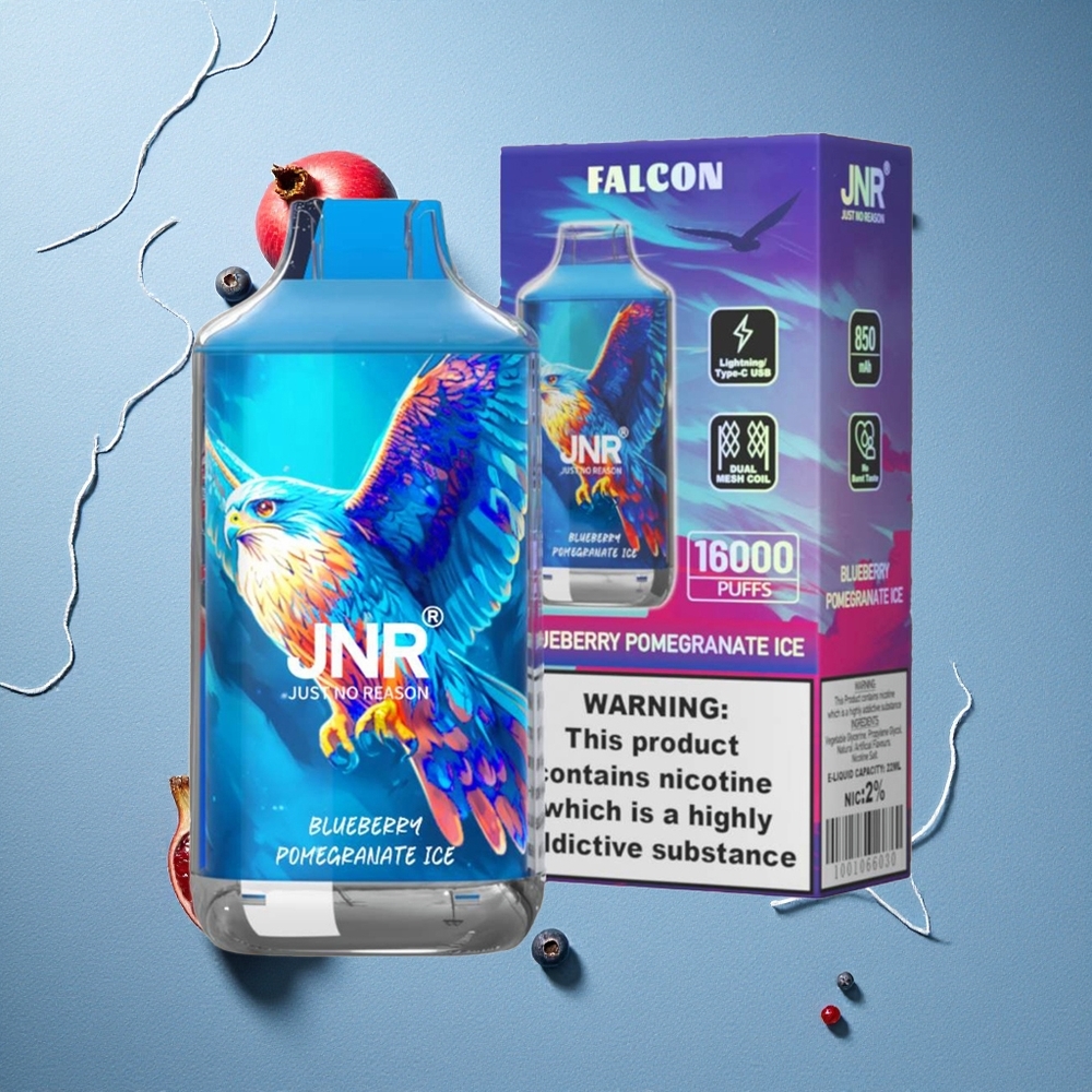 JNR Falcon 16000 Puffs توت أزرق ورمان جليد مع شاشة LED ذكية وسعة بطارية 850 مللي أمبير