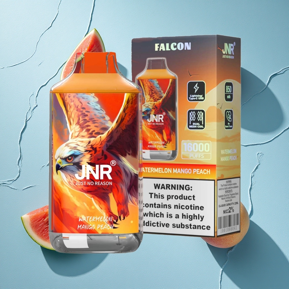 JNR Falcon 16000 Puffs سحري بطارية 850 ملي أمبير و سعة سائل 22 مل نكهة بطيخ مانجو خوخ