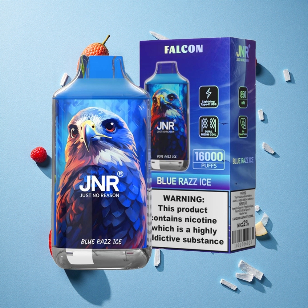 JNR Falcon 16000 Puffs سيجارة إلكترونية تبوغ التوت الأزرق الجليدي بسعة بطارية 850 مللي أمبير