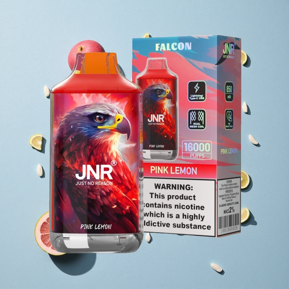 JNR Falcon 16000 Puffs مبخرة الكترونية ليمون وردي بسعة سائل 22مل و شاشة LED ذكية