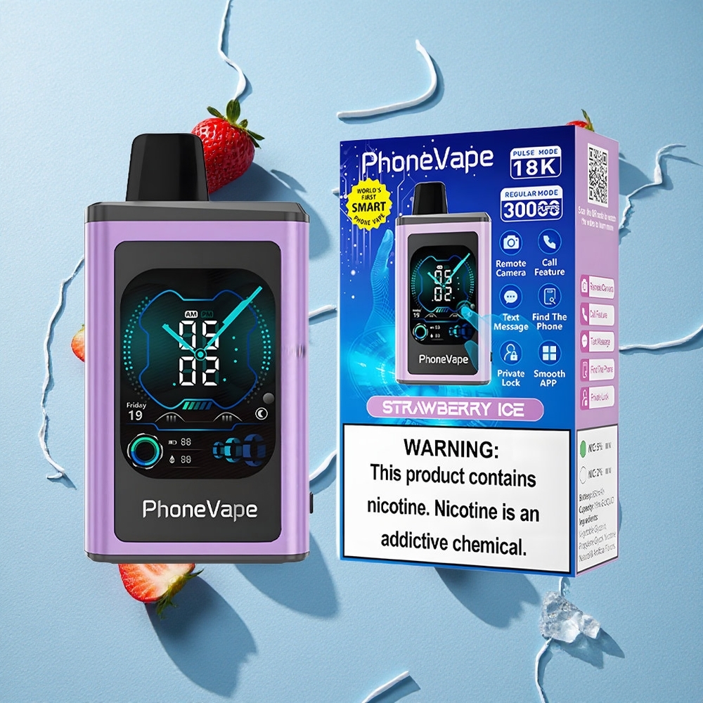 JNR PhoneVape 30000 نفخة بخاخة نكهة الفراولة آيس مع شاشة كاملة وبطارية قابلة لإعادة الشحن 850mAh