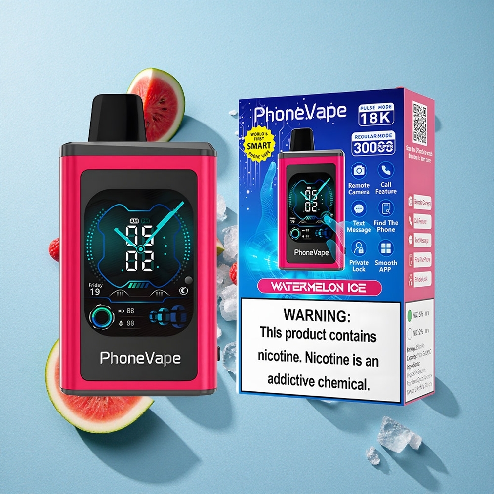 JNR PhoneVape 30000 نفخة سيجارة إلكترونية بطعم البطيخ المثلج مع شاشة كاملة وبطارية 850mAh قابلة لإعادة الشحن