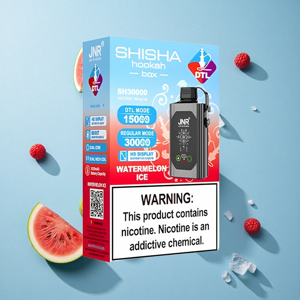JNR Shisha Hookah Box 20500 Puffs بطيخ مثلج بشاشة عالية الدقة ونوع سي شحن سريع